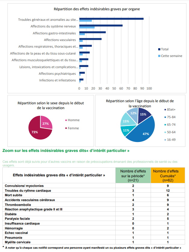 - l’ANSM ne fait strictement aucun commentaire sur cette découverte ! Ainsi la population féminine peut continuer à se faire vacciner, à engraisser les labos pharmaceutiques… et à mourir. Comment se fait-il que ces informations dramatiques ne circulent nulle part ? Ce sont les femmes la population à risque de la vaccination.