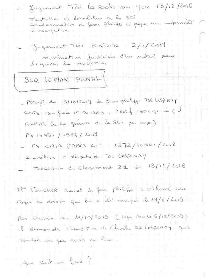 Ci-dessous le seul apport personnel de l’enquête, cette « note de synthèse » peu lisible :