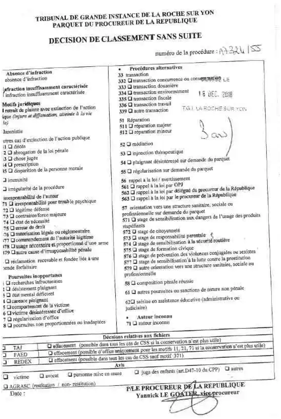 Emmanuelle Lepissier, le procureur de la Roche sur Yon, ne s’est donc pas contentée de faire de la rétention de témoignages, pourtant demandés par les enquêteurs (voir ci-après), mais aussi elle leur a transmis des données biaisées pour mieux me nuire.