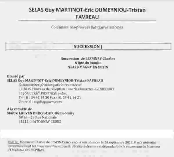 Remarquez aussi comment leur complice (un de plus !), le notaire Lafouge-le-Corrompu, qui a réclamé l’expertise pensant que le délai de prescription pour recel successoral était dépassé, tente dans sa requête auprès des commissaires-priseurs d’escamoter son nom en mettant en avant celui de son associé Maître Loeven Bruck.