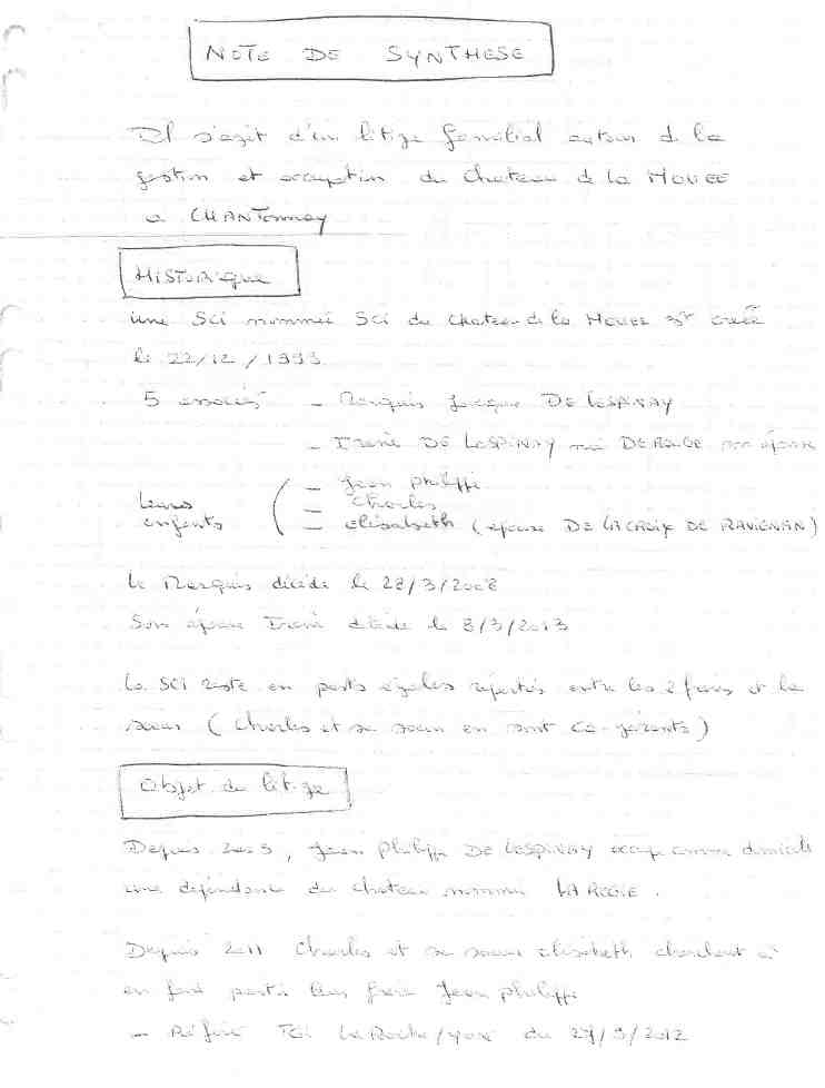 Ci-dessous le seul apport personnel de l’enquête, cette « note de synthèse » peu lisible :Lepissier