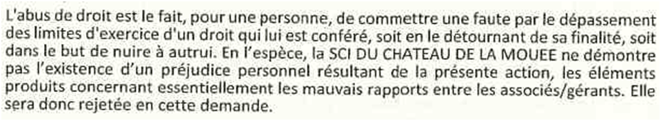 Et bien, le tribunal en la personne de Mme Laëtitia Nicolas, Présidente, me déboute et me condamne à payer 5 000 € à la SCI (article 700) !