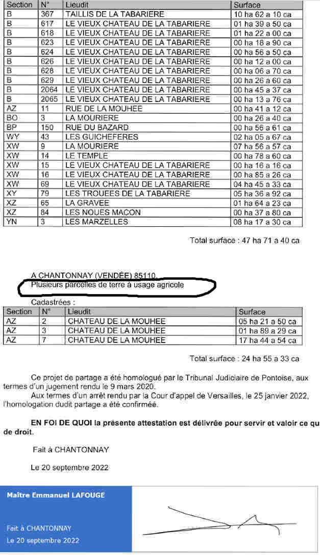 III – La falsification ultime de Lafouge : le parc d’agrément de la Mouhée est devenu « parcelles agricoles » pour que les tribunaux – et moi-même – n’y voyons que du feu !