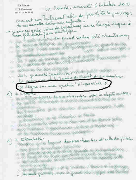 Voyez ci-dessous : tout le texte a été repris pour lui éviter des efforts d’écriture, sauf que mon samovar a disparu remplacé par… la quotité disponible qui me sanctionne gravement et récompense mon frère et ma soeur !