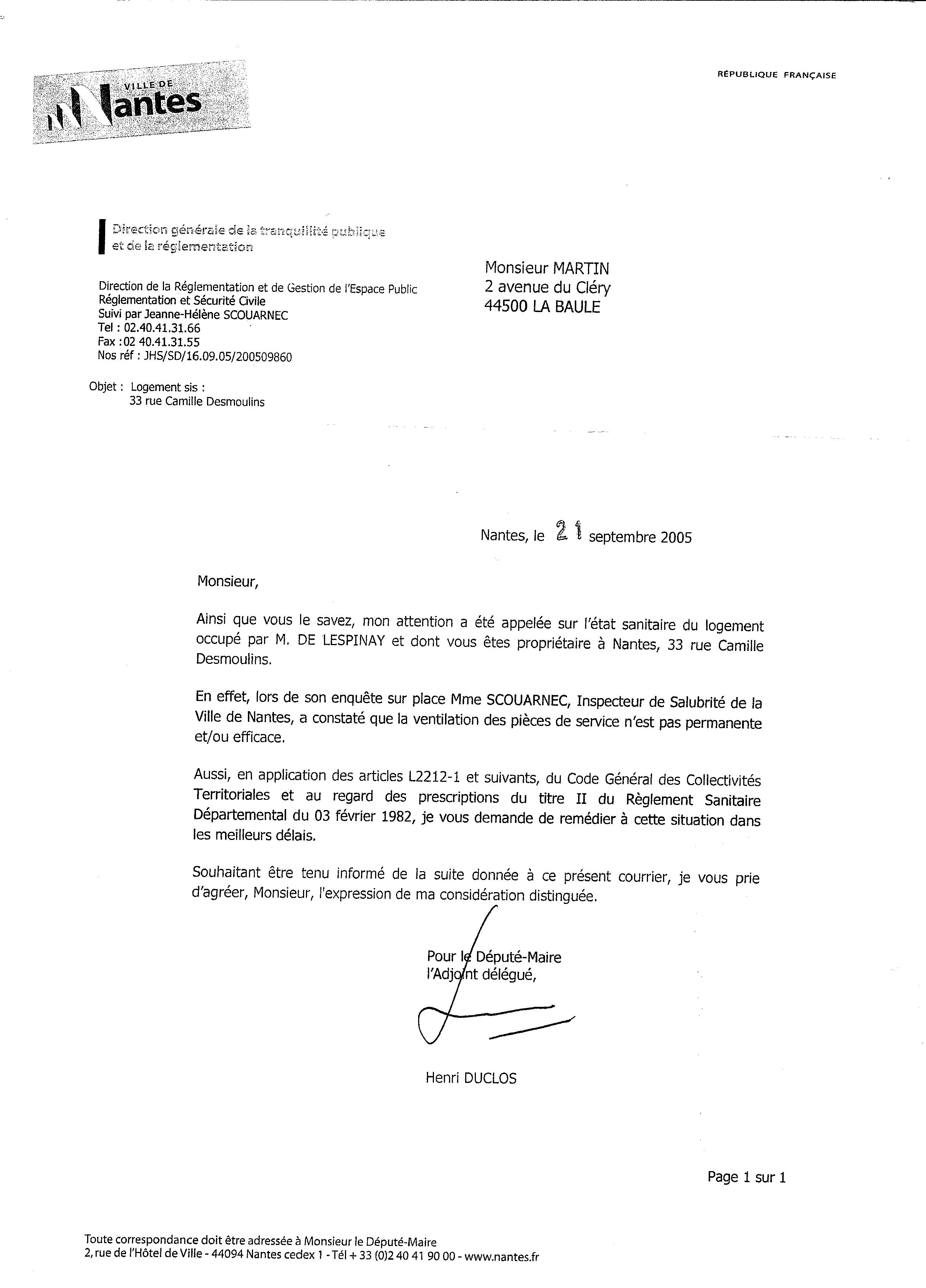 La Macif m’a commis un avocat : Matthieu Dabouis, entièrement payé par elle. Il est visiblement inexpérimenté, peu assuré, pas du tout rusé mais c’est le seul avocat de Nantes qui a accepté les bas honoraires de la Macif ! C’est lui qui m’apprend que la loi interdit de ne pas payer son loyer sauf si l’appartement est clairement insalubre, ce qu’il n’est pas. Je devrais donc perdre. Ceci dit, tout de même pas pas au point d’être expulsé. Il pense qu’il me sera probablement ordonné de payer les loyers en retard plus des dommages et intérêts, peut-être en m’accordant un délai, en échange quoi Martins devra mettre à profit de son côté pour remettre l’appartement en état.