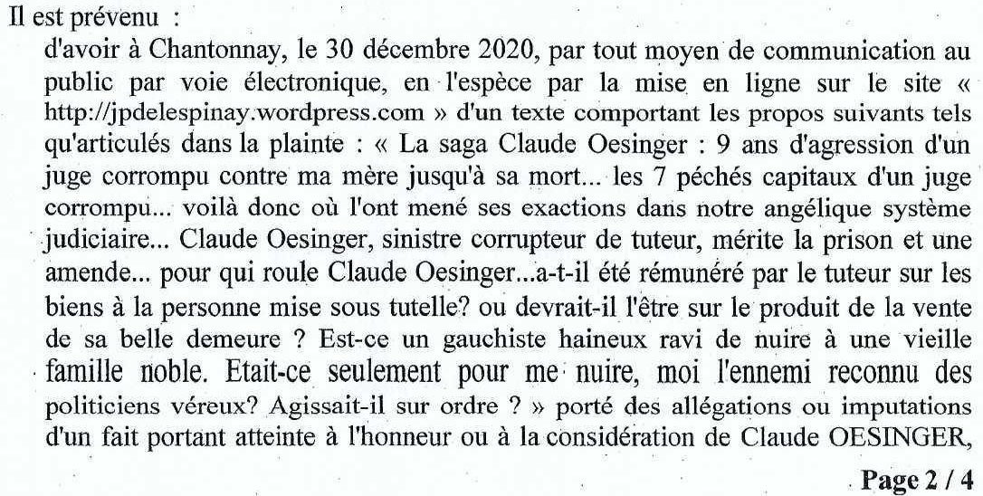 Dans mon article « La saga du juge des tutelles corrompu Claude Oesinger » le juge malhonnête de Niort Gerald Faucou, visiblement un adepte de la forfaiture, n’a puisé que des propos véniels mais jamais les faits que j’y expose et qui les explique. Surtout, il se garde bien de citer le contenu de mes plaintes déposées contre Oesinger que j’y relate, autrement accusatoires. Jugez-en par vous même, les voici :