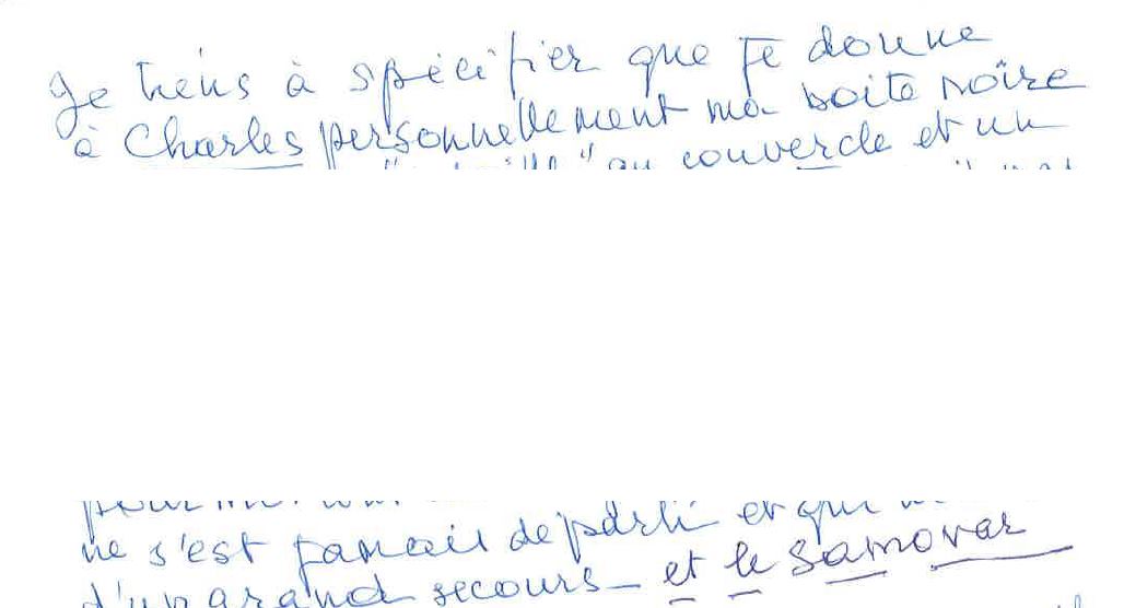 Extrait du testament de ma mère donnant le samovar à mon frère (Noël 2003)