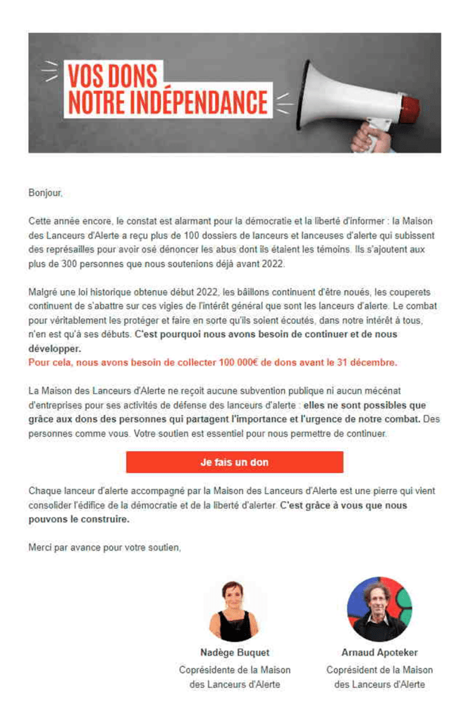 Comme vous pouvez le voir, Stéphanie Gibaud n’est pas du genre à se cacher derrière son petit doigt… Hélas, je vais découvrir qu’elle agit uniquement dans son intérêt personnel égoïste, contrairement à l’esprit des lanceurs d’alerte qui travaillent entre eux la main dans la main dans l’intérêt général.